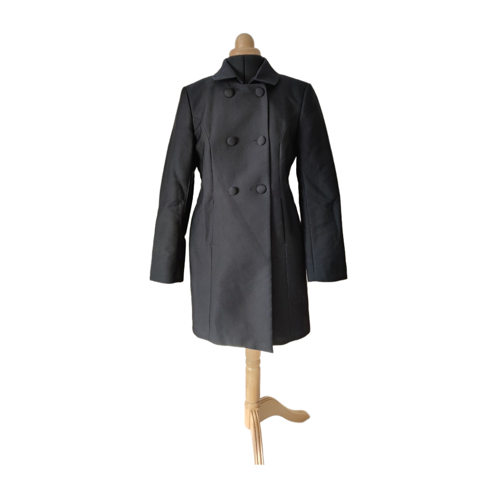 Ryhdikäs, juhlava, himmeäkiiltoinen takki. Vastaa kokoaan.