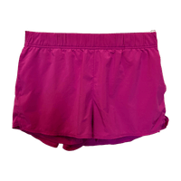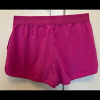 Vyötäröllä kuminauha. Väri on jotain pinkin ja lilan väliltä. Koska kyseessä on tennisshortsit niin näistä löytyy toki taskut. Shortsit ovat ns. kaksinkertaiset eli alempi kerros on ihonmyötäinen ja päällimmäinen kerros löysempi taskuineen.
