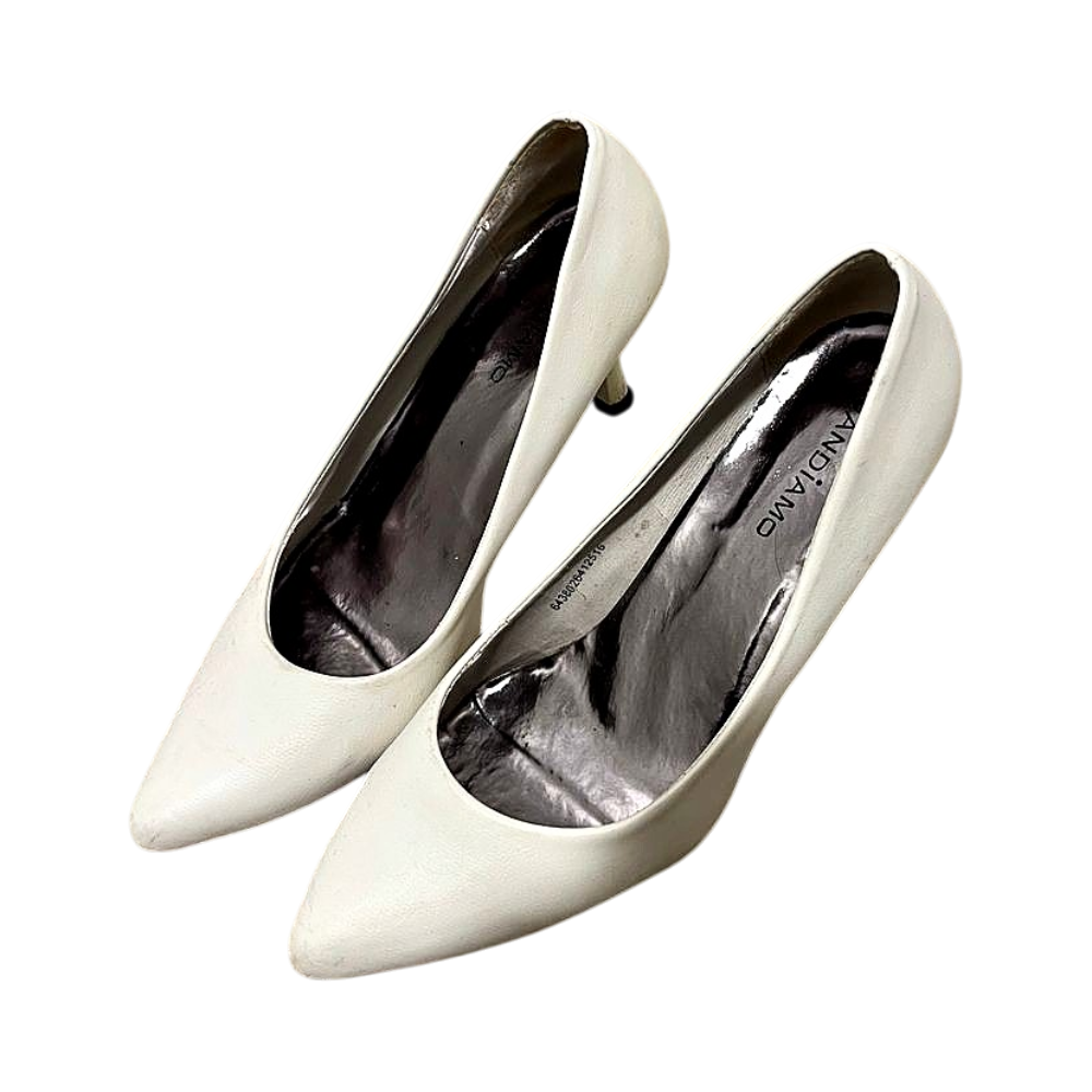 White pointed toe heels, 39