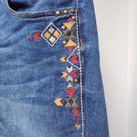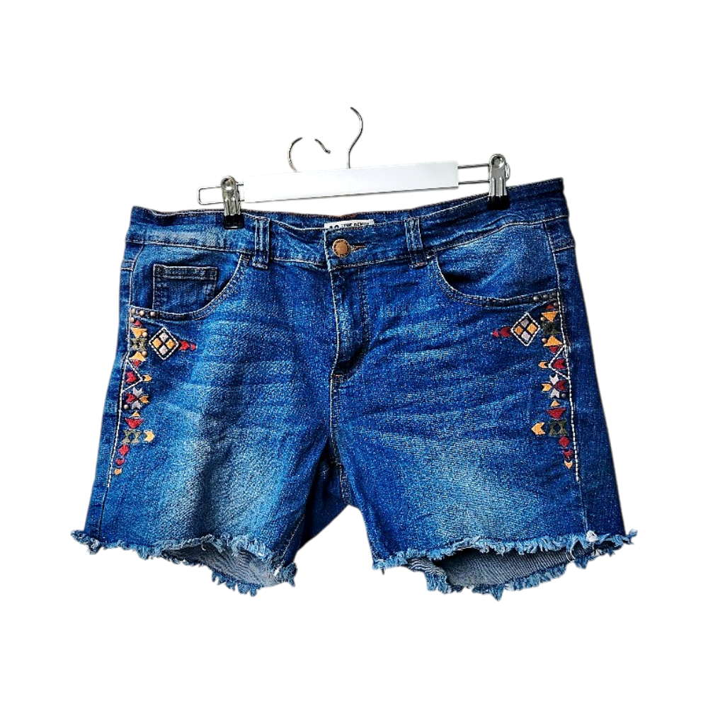 Siniset farkkushortsit kirjailulla