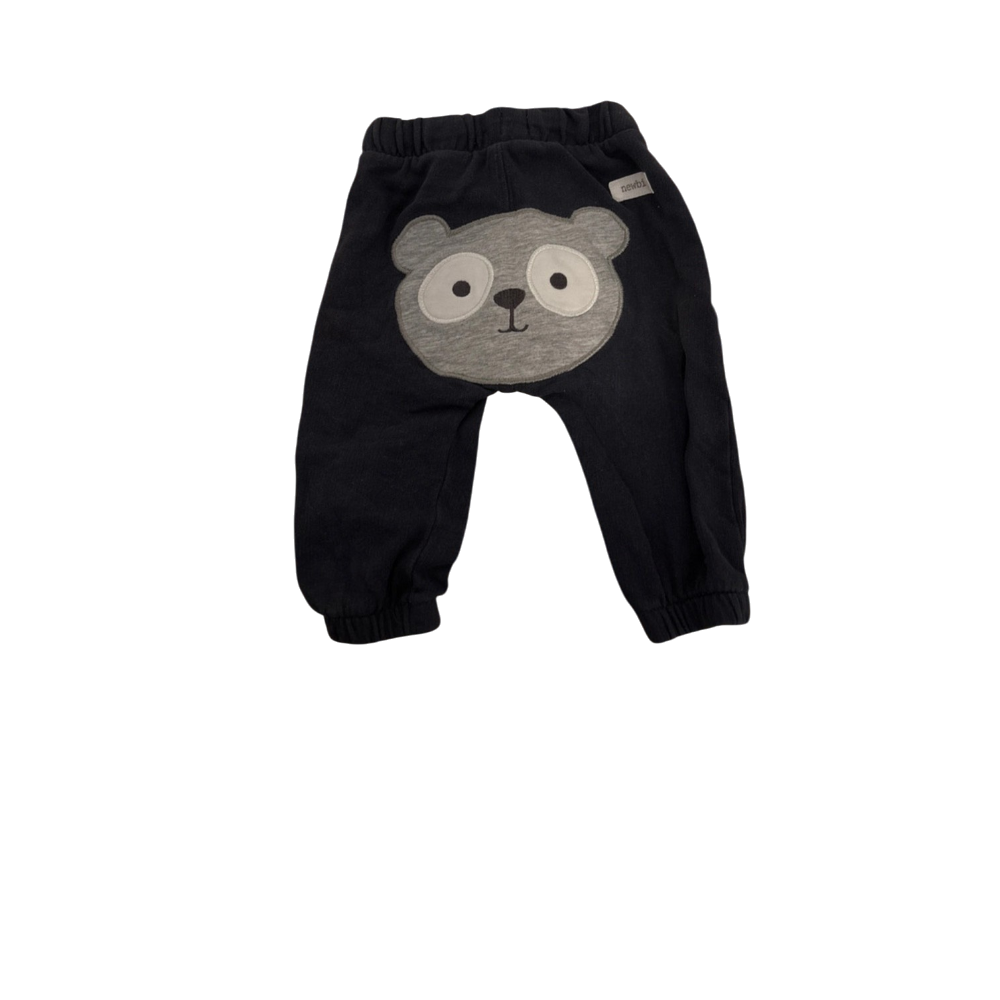 Pehmeät, joustavyötäröiset vauvan housut, karhukuosi takana.