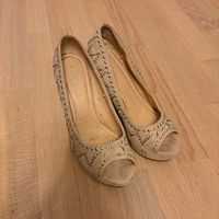 Beige studded wedge heels