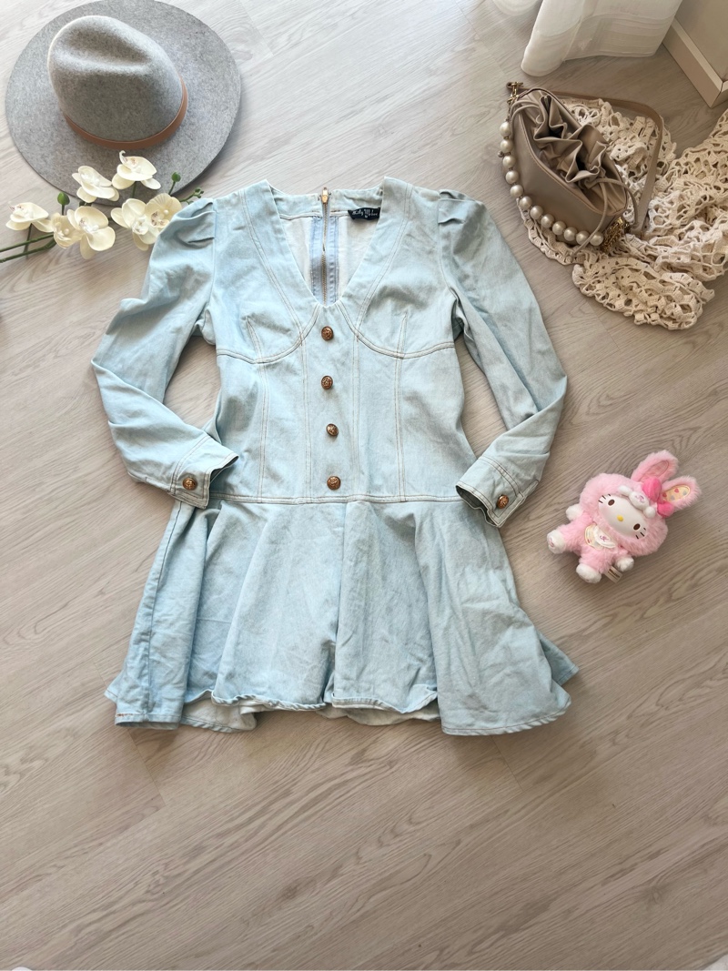 Söpö farkkuminimekko, koko M 💙 Brändi ranskalainen Lily Mcbee. Selässä vetoketju, edessä ja hihoissa koristenapit. Malli ei täysin tyköistuva ja helma laskeutuu nätisti, toimii hyvin esim. ylipolvensaappaiden kanssa 🥰 Rypistynyt kaapissa mutta höyrytän ennen lähettämistä.