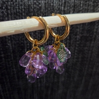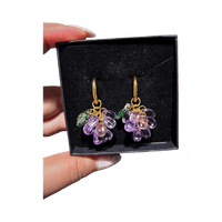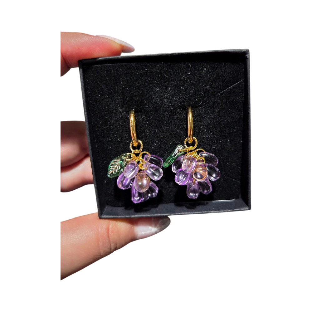 Kauniit violetit viinirypäle korvakorut kultarenkailla.