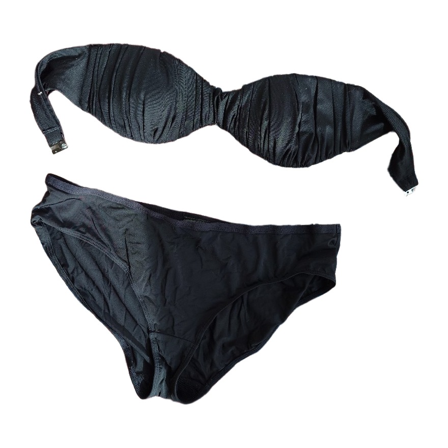 Musta setti käytetyssä kunnossa mutta hyvä vielä seuraavalle. Yläosa olkaimeton.