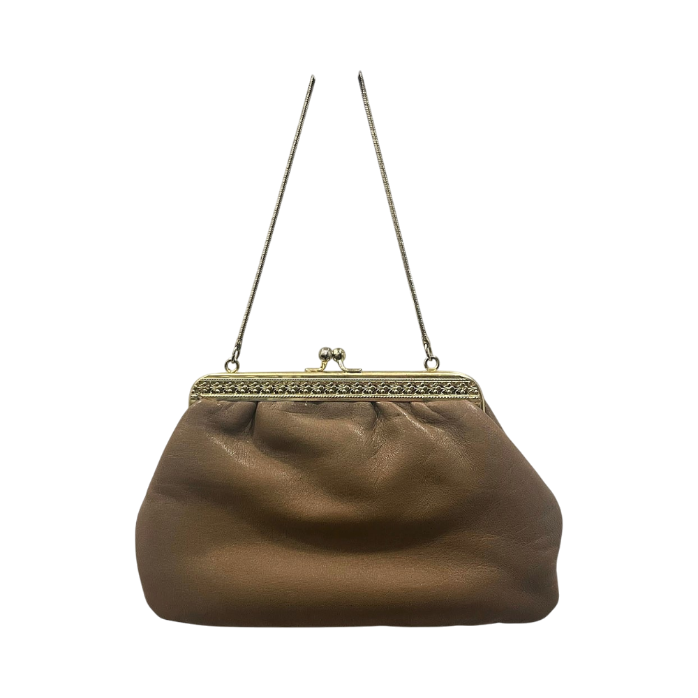 Pieni vintage vaaleanruskea nahkalaukku🤍