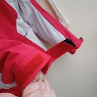 Peukalon paikat, tarranauhoista jäänyt jälkeä, nämä ei näy takin ulkopuolelle.