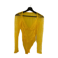 Käyttämätön keltainen pitsibody, sopii M/L koolle, mutta on itselle liian pieni/väärässä kohtaa rinnoista, eli sopii paremmin pienirintaiselle.