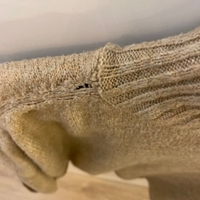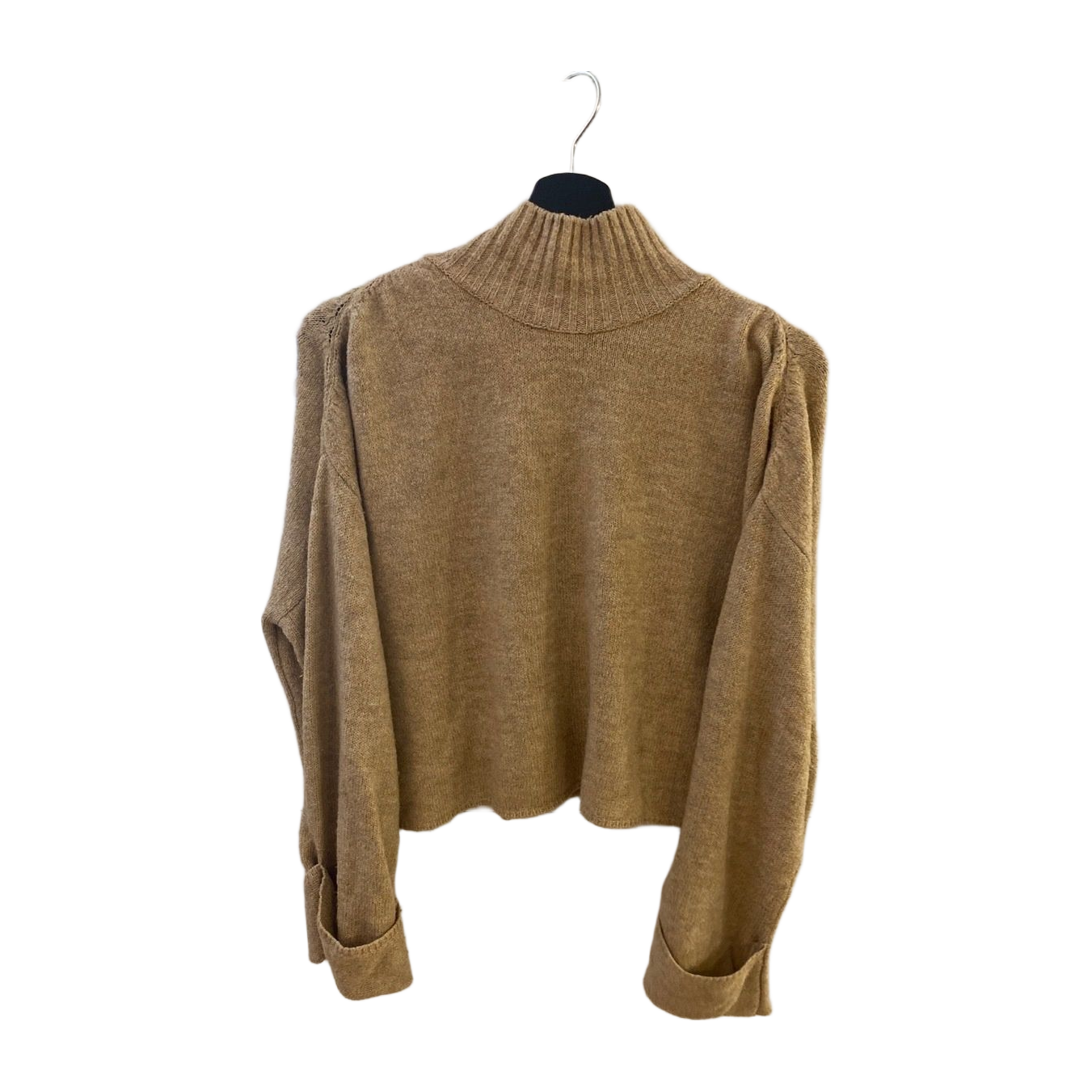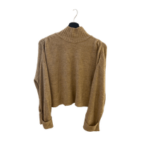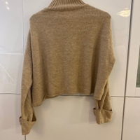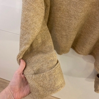 Vaaleanbeige oversize croptop/ lyhyt neule pitkillä levenevillä hihoilla. Koko M. Saumassa pieni reikä.