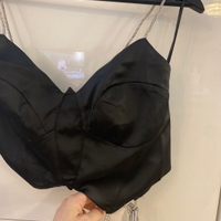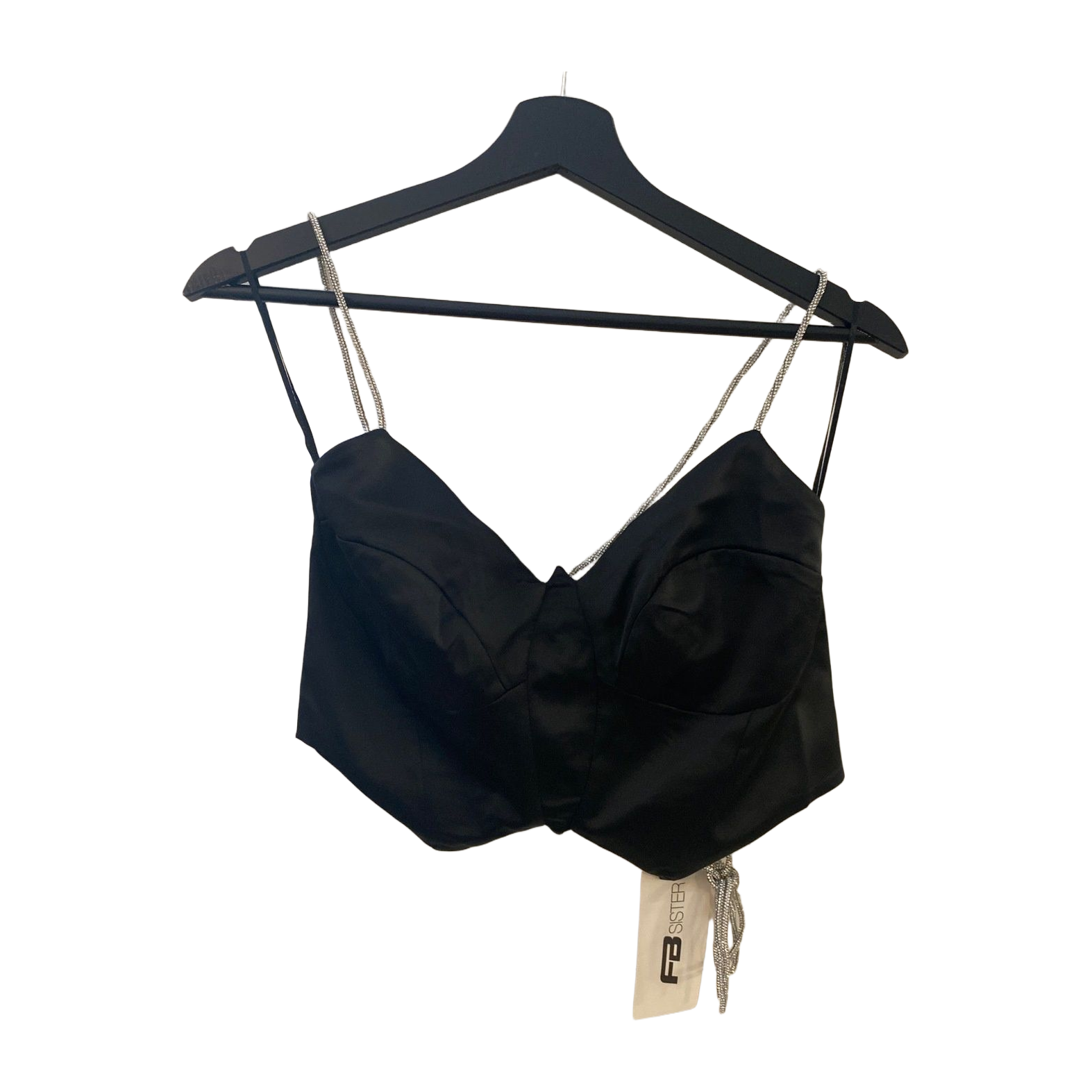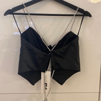 Musta croptop kimaltavalla taakse sidottavalla nauhalla. Koko L.