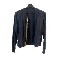 Tummansininen verkkatakki vetoketjulla. Lyhyt malli. Koko S, sopii myös M.