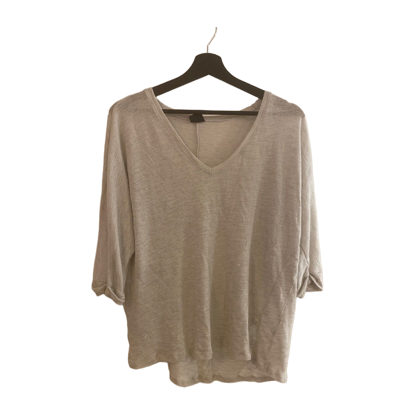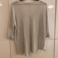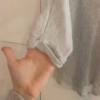 Vaalean harmaa löysä 3/4- hihainen läpikuultava paita, koko XL. Sopii myös oversize M/L kokoiselle. Muutama langannousu. Huom! Kaikki 5e tuotteet; osta 2 ja saat kolmannen kaupan päälle!