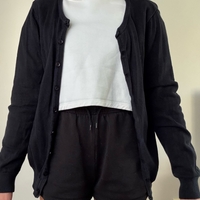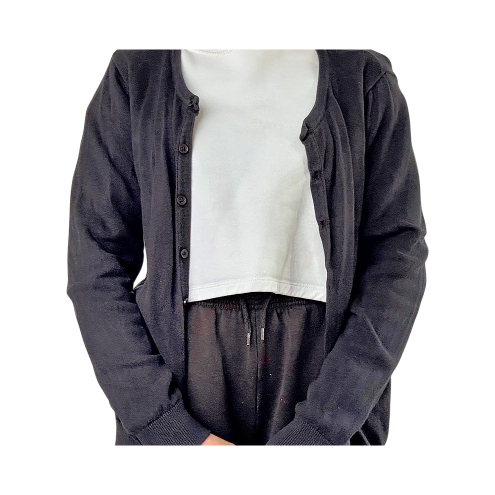 Versatile black cardigan. Size S/M with button closure. Lightweight and comfortable to wear, easy to style for casual outfits, school, work or layering. A timeless basic piece that goes with everything. Excellent condition.