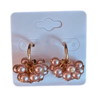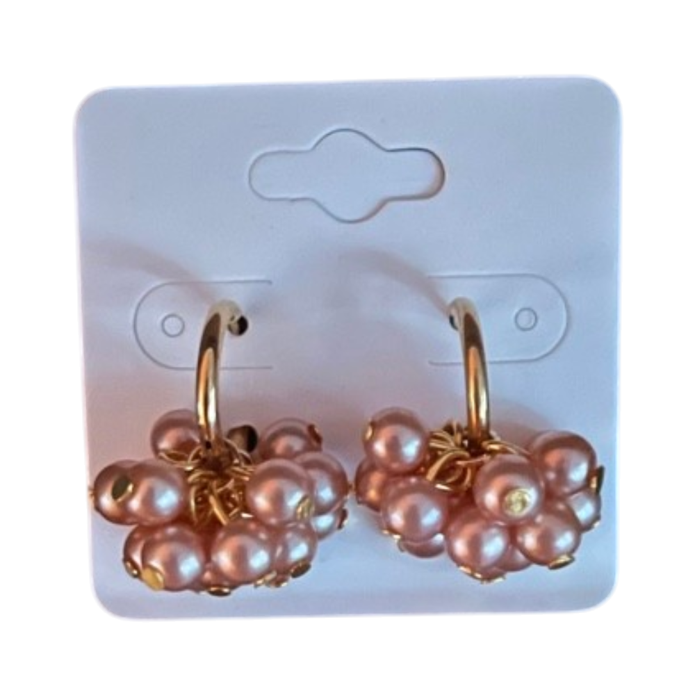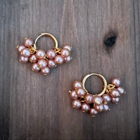 Helmikorvikset vaaleanruskeilla helmillä. Korurengas ruostumatonta terästä halk 14 mm.
