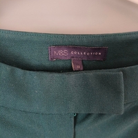 Suorat housut, tummanvihreät, siistit, mutta melko paljon käytetyt. Pientä nukkaantumista haarassa. Muuten hyvässä kunnossa. Ostettu käytettynä, itselle liian pienet. Kangas on sen verran pehmeää, että sen pintaan jää helposti kiinni pölyä yms.