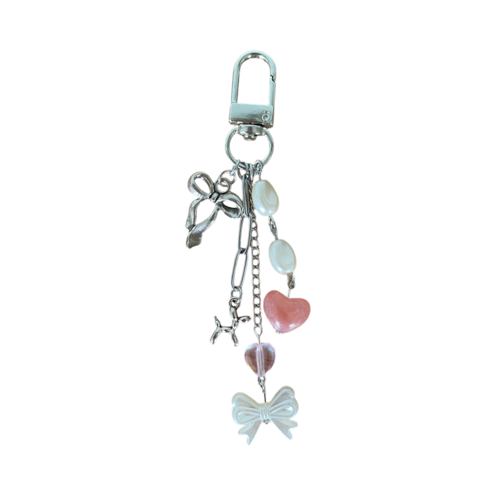 Hopeanvärinen laukkukoru rusetti ja sydänriipuksilla💗