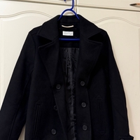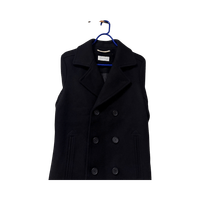 Käyttämätön,Lyhyt, kaksirivinen villakangastakki, vuoritettu, hyväkuntoinen.