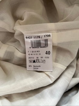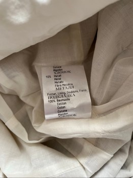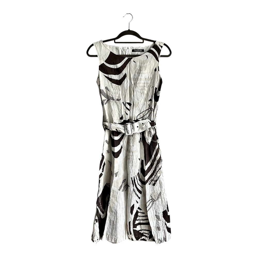 Patterned dress with a waist belt, size 40. Made of cotton and metal fibers with a cotton lining.