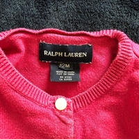 Ralph Lauren baby girl cardigan Size74/12month- This adorable cardigan shows some signs of used (ex.pilling). Still looks very nice and clean.