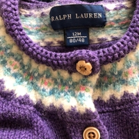 Ralph Lauren babygirl cardigan Size80/12month- This adorable cardigan contains 1% cashmere and 4% lambs wool with lovely buttons design (all 5 buttons are different) . This is in a good condition with no wear.