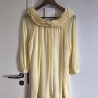 Vintage Yellow Dress- This beautiful dress was bought from Japan, comes along with a long decorative lining, you can use it whether on the waist , as a scarf or hairband. The material like chiffon, perfect for different occasions. One button is missing on the upper part at the back (which is not visible at all, as shown in the picture), only used once with very good condition.