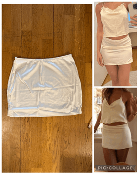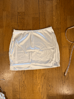 Valkoinen hame, jossa joustava vyötärö. Sopii kesäisiin asuihin.