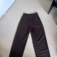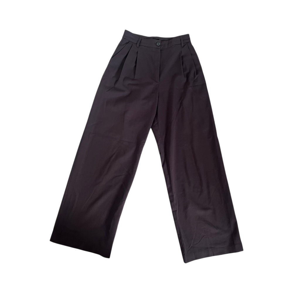Leveät lahkeet, korkeavyötäröiset siistit housut. Mukavat päällä.