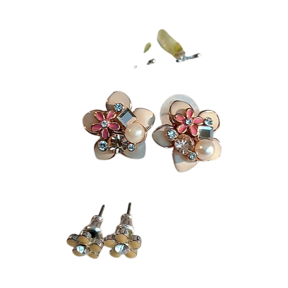 Set of three pairs of floral design stud earrings. 100% new