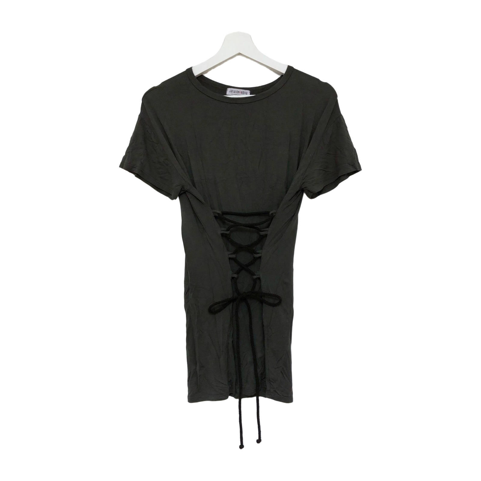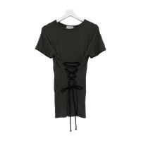 Dark green short-sleeve tunic with bold lace-up detail at the front. Casual yet stylish, perfect for everyday wear and leisure. Size S/M, excellent condition.