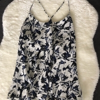 BikBok top in size XS. White base with dark blue floral/print design and thin criss-cross straps at the back. Excellent condition.