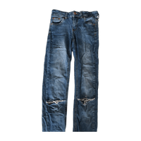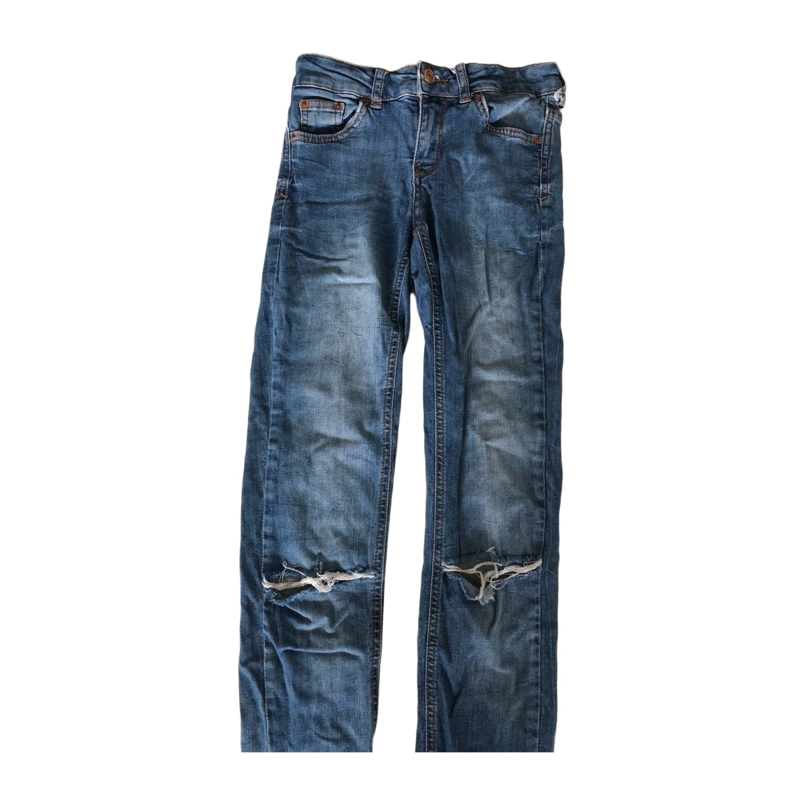 Blue Gina Tricot jeans, size XS. Straight leg with a distressed look, handmade ripped knees. Excellent condition.