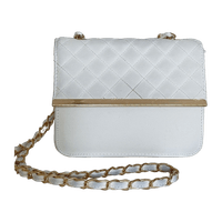 Valkoinen olkalaukku kullanvärisellä ketjuhihnalla – juhla / arki / bileet