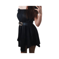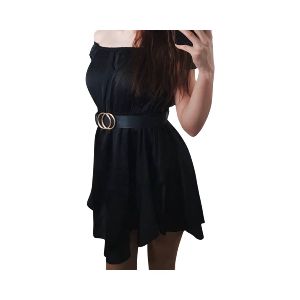 Elegant black off shoulder mini dress by Boohoo. Size XS, worn once, excellent condition. Easy to style with heels or sandals – perfect for parties or evening events. Looks great as-is or styled with a belt (belt not included).