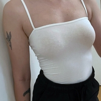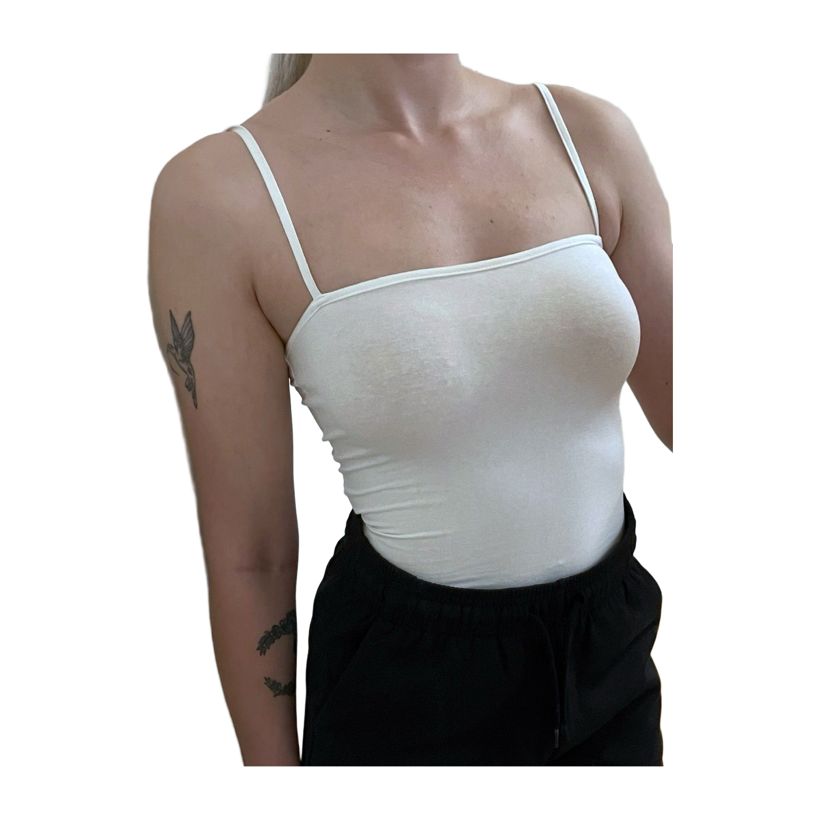 Simple and versatile white top with thin straps. Colour bright white, easy to style with jeans, skirts, or cardigans. Size XS (34), stretchy fabric ensures a comfortable and flattering fit. Excellent condition, no stains or visible wear.