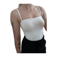 Yksinkertainen ja monikäyttöinen toppi ohuilla olkaimilla. Väri kirkkaan valkoinen, helppo yhdistellä niin farkkujen, hameiden kuin neuletakkien kanssa. Koko XS (34), joustava materiaali istuu hyvin ja tuntuu mukavalta päällä. Kunto erittäin hyvä, ei tahroja tai kulumaa.