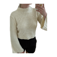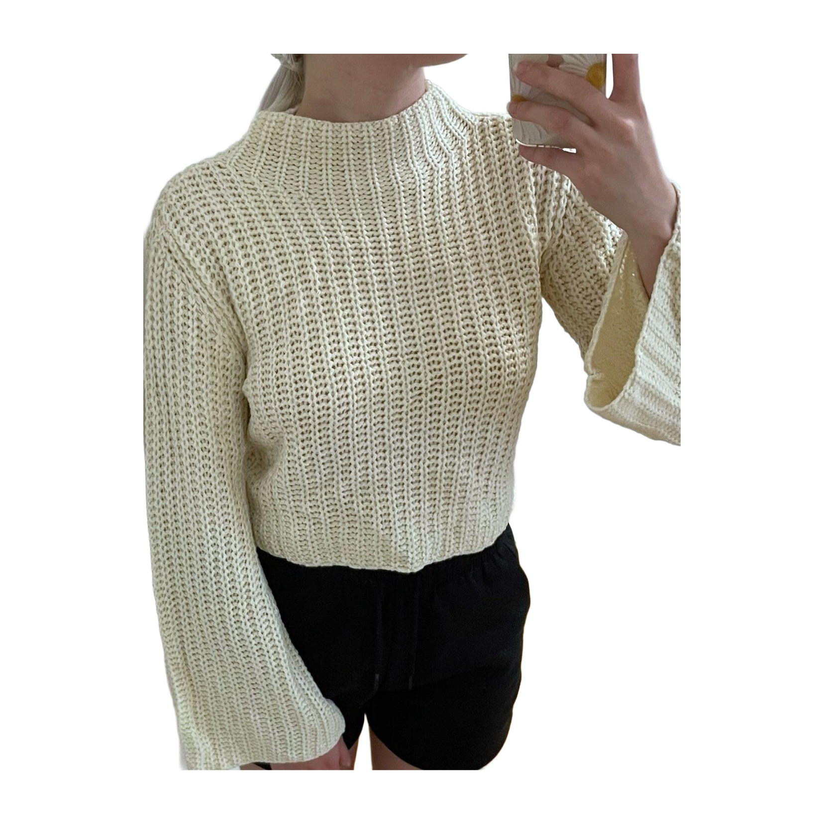 Stylish light beige knit with wide sleeves and a cropped fit. Size M, never used. Airy knit and timeless design make it versatile for everyday wear and leisure. Perfect to pair with jeans or skirts – adds a minimalist and modern touch to any outfit.