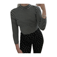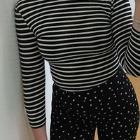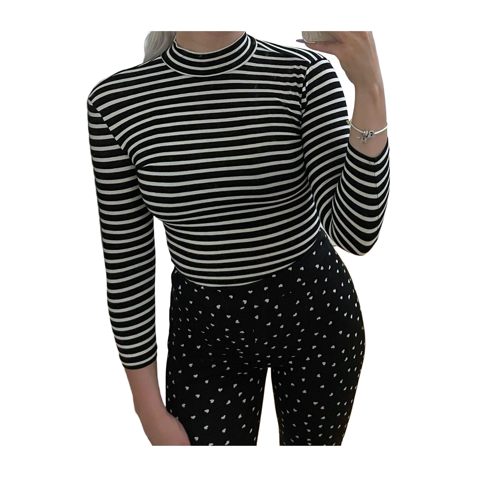 Trendy long-sleeve top with black and white stripes and a mock turtleneck. Very stretchy fabric, fits well for sizes XS–M. Stylish and versatile piece for everyday wear, office looks, or nights out. Excellent condition, no stains or visible wear.