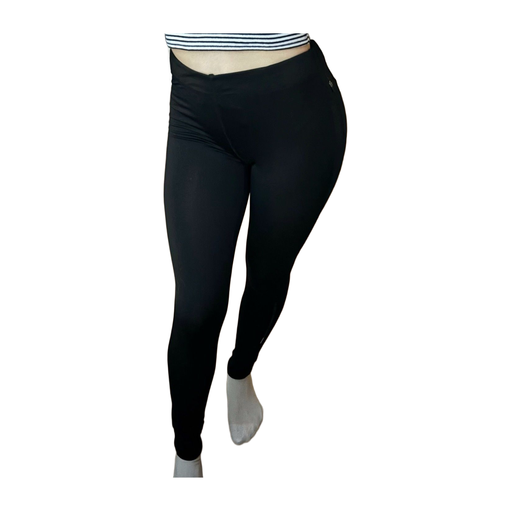 Black sports leggings from Stadium in size S (EU 36/UK 8), in excellent condition. Features adjustable drawstrings inside the waistband, a practical side pocket, and zippers with reflective details at the legs. Perfect for workouts, running, or casual wear.