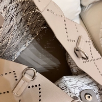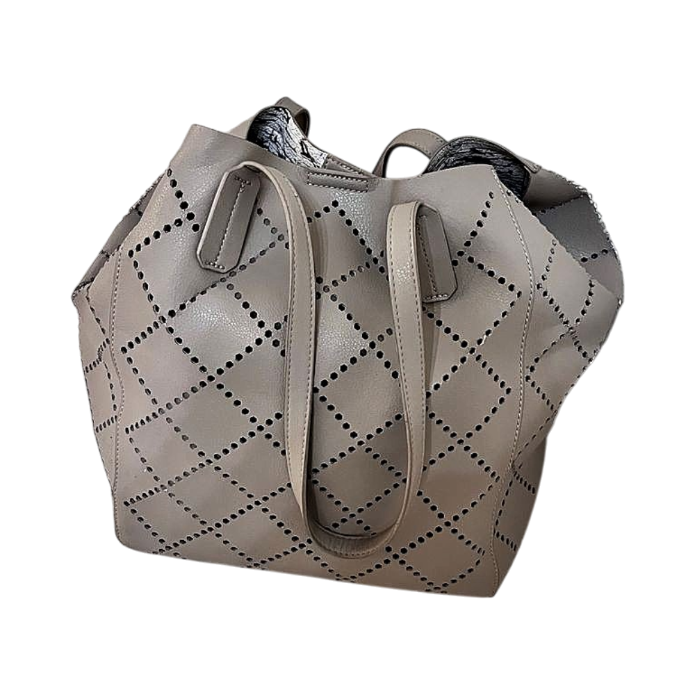 o.i.s beige keinonahkainen olkalaukku, mukaan tulee myös irroitettava pidempi hihna. Etu osassa koristelu on läpinäkyviä koloja, sisällä pohjassa irroitettava pala, mahtuu itellä myös läppäri. Muuten hyvässä kunnossa mutta takana alhaalla tummumaa ja kulumaa (katso kuvat)