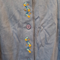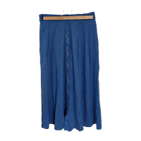 Mukava sininen midihame napituksella ja koristeompeleilla. Joustava vyötärö. Koko 12. Itse S-M kokoinen