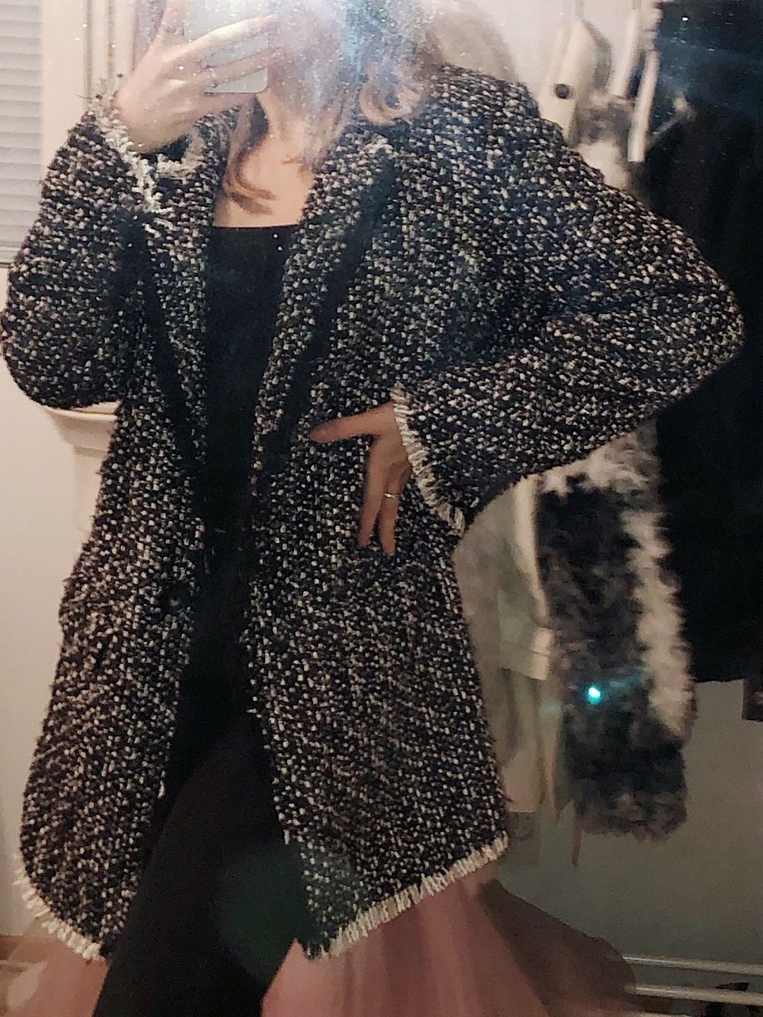 Mustavalkoinen villakangastakki nappikiinnityksellä ja taskuilla🌸 Koko 36/S✨