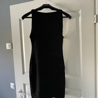 Yksinkertainen musta hihaton mekko, sopii moniin tilaisuuksiin.