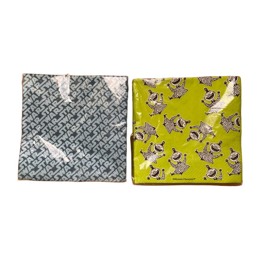 Set of two packages of paper napkins, with Star Wars and Moomin themes. New.