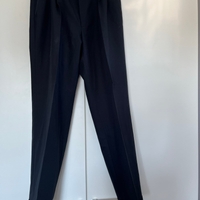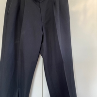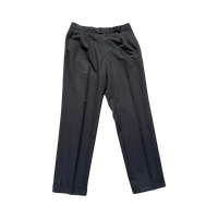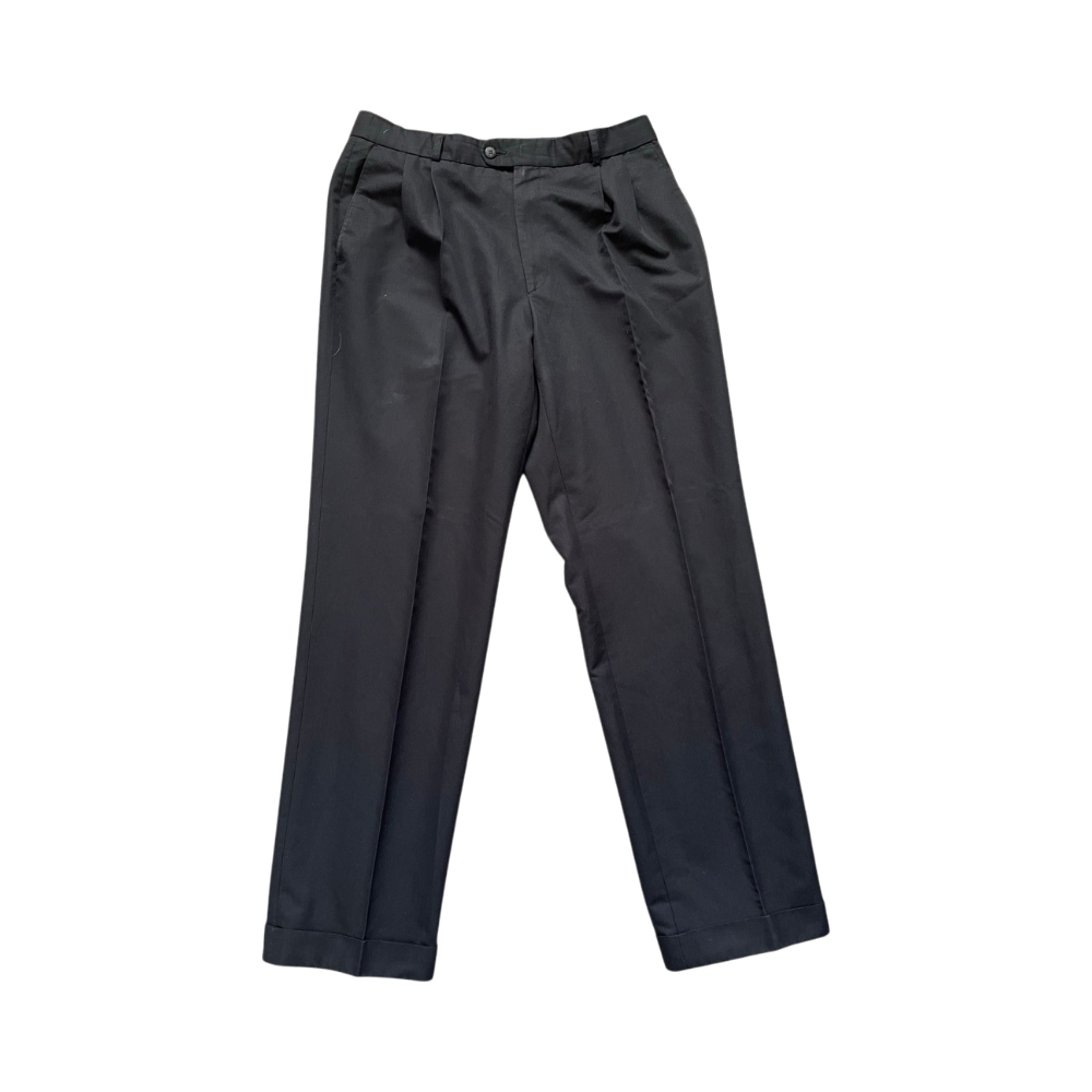 Mustat, suoralahkeiset housut käänteillä. Vyötärön ympärys 86 cm