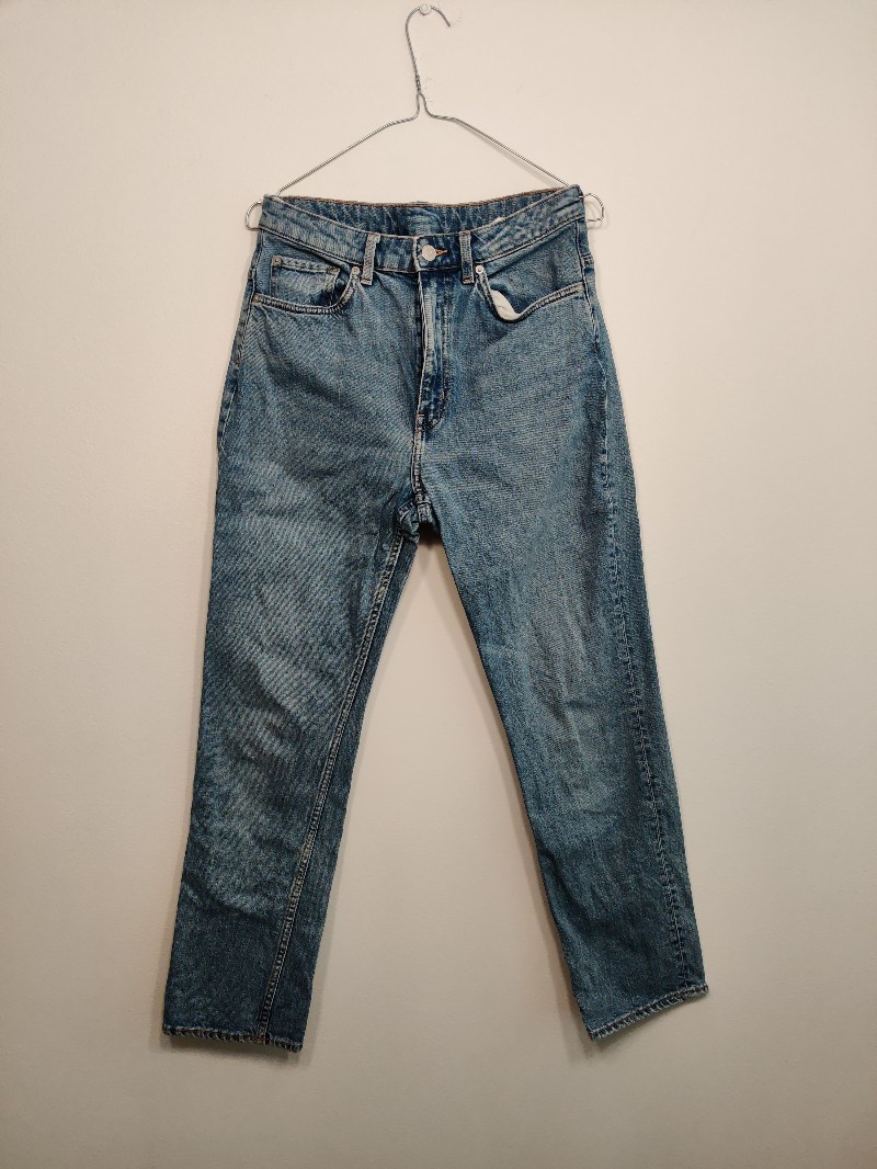 Case jeans have a slim fit with a high waist. They are slim at hip, thigh and straight from knee down. Made of a comfort-stretch material. W 30 L 28