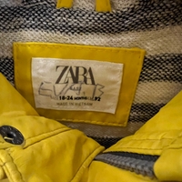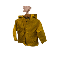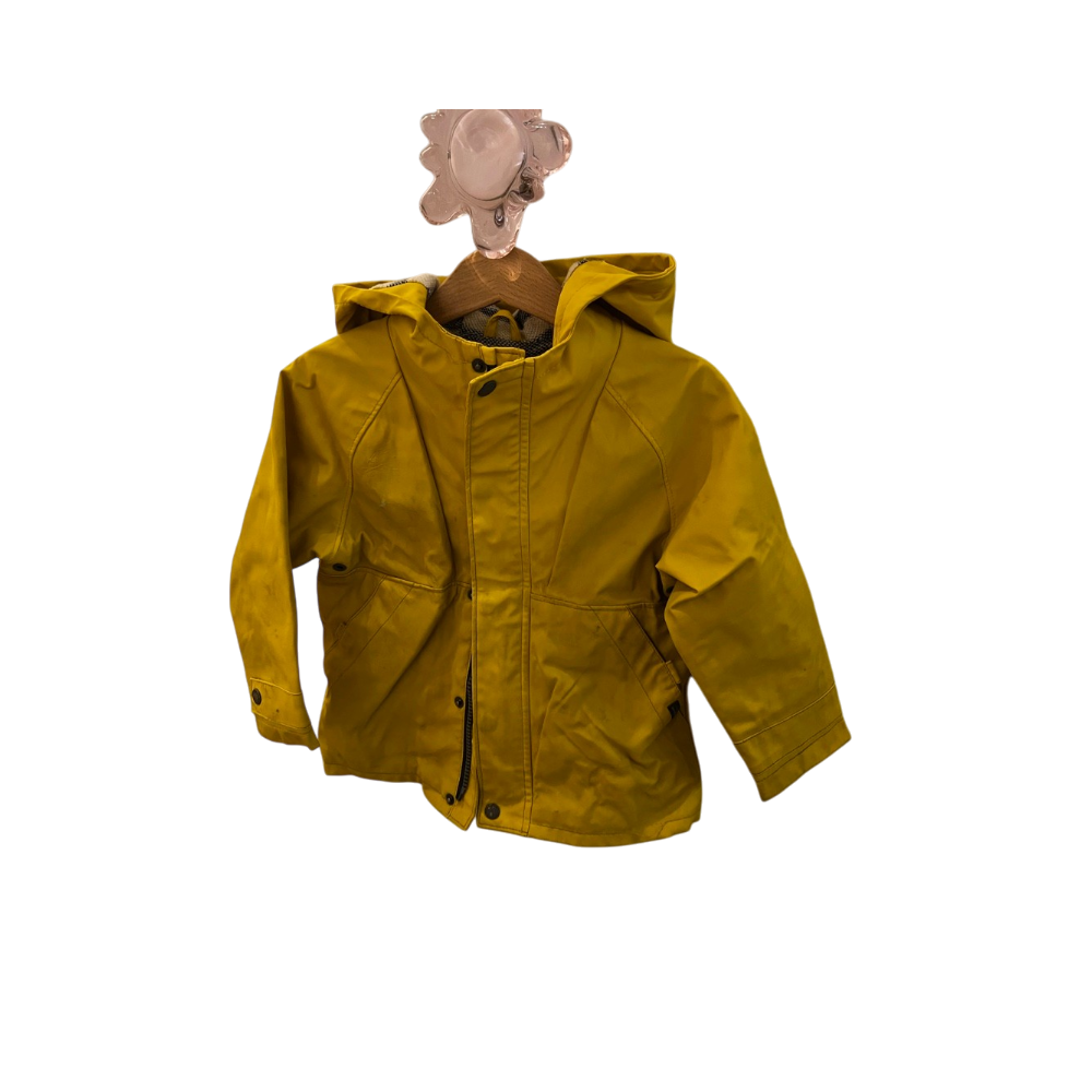 Käytetty lasten kevytparkatakki, näkyviä kulumia ja likaa.