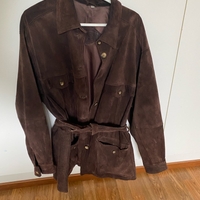 Vyöllinen ruskea mokkatakki, napit ja taskut, koko 36. Edestä puuttuu yksi nappi.