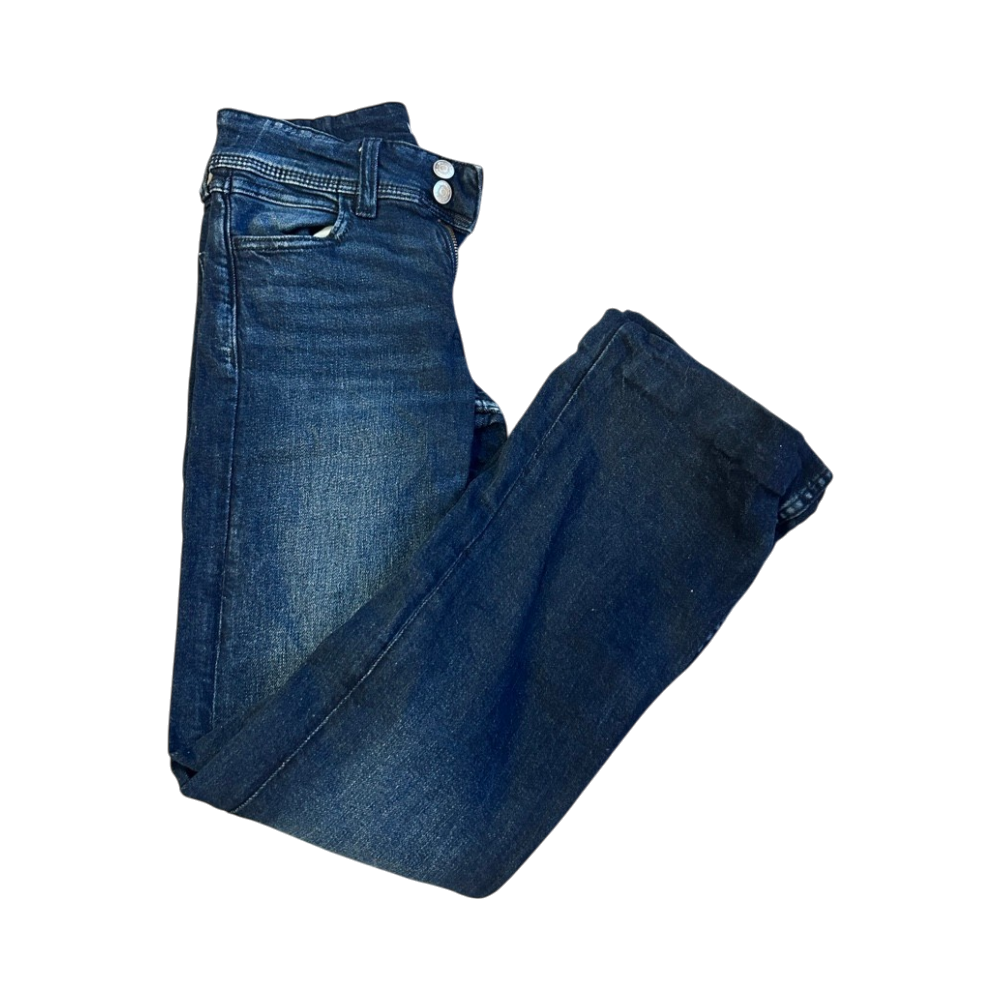 Tummansiniset naisten farkut, lievää kulutusta, napit edessä. Koko 158/164 vastaa koko xs