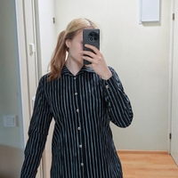 Mustaharmaaraidallinen jokapoikapusero. Vähän käytetty. Malli on miesten xs. Kaupan päälle voit valita minkä vain 1-4 € maksavan tuotteen!