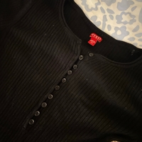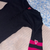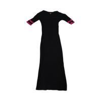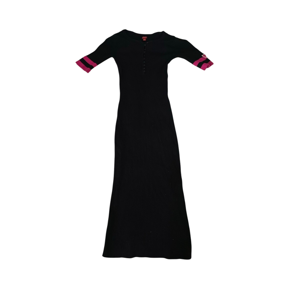 Pitkä ribbimekko napituskannella ja vaaleanpunaisilla hihansuuilla. Erittäin hyvässä kunnossa😊.